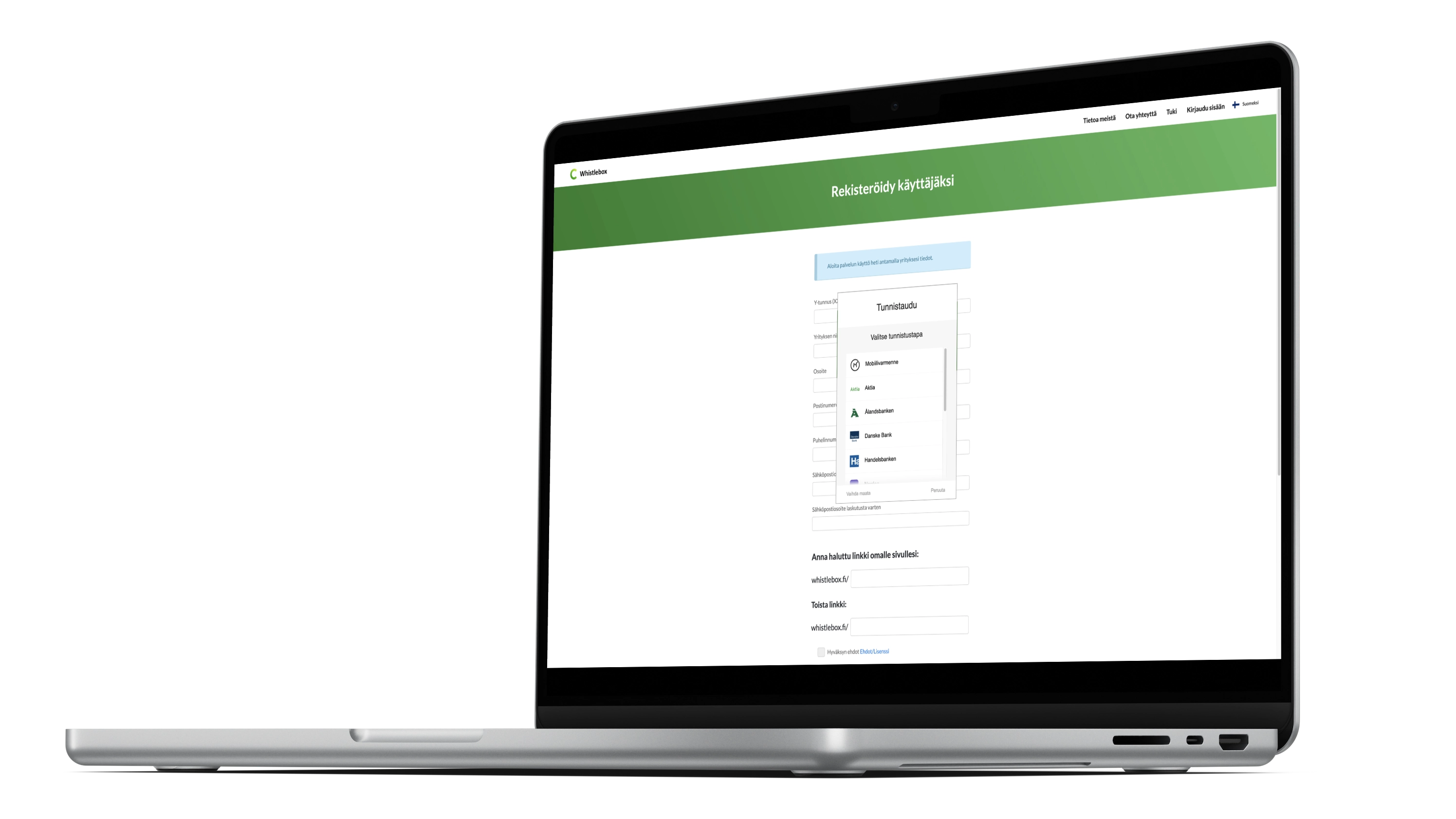 - Kun rekisteröidyt, saat oman yrityskohtaisen ilmoituskanavasivun: whistlebox.fi/your_own_page, jonka jaat henkilökunnalle, asiakkaille ja toimittajille.